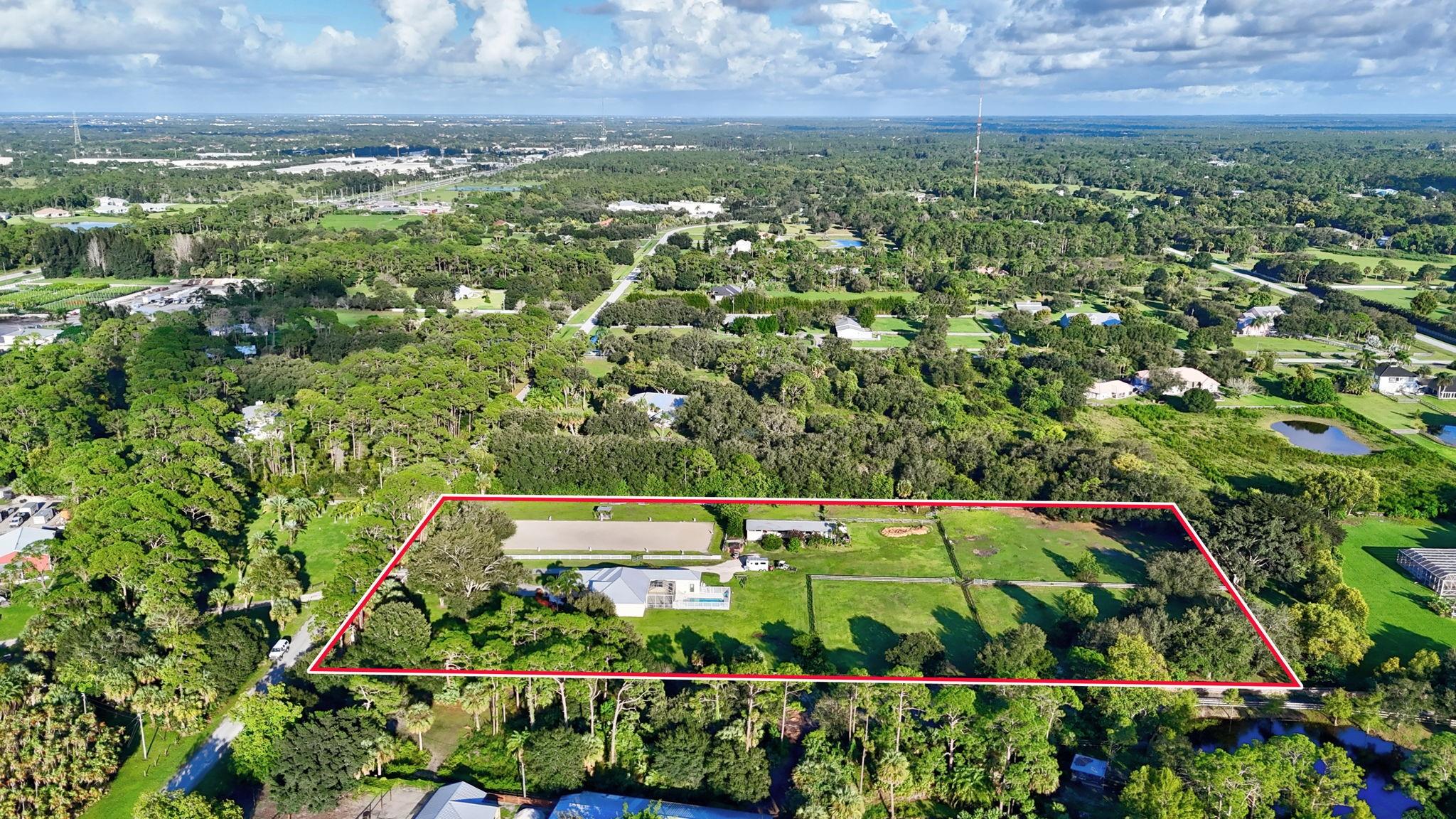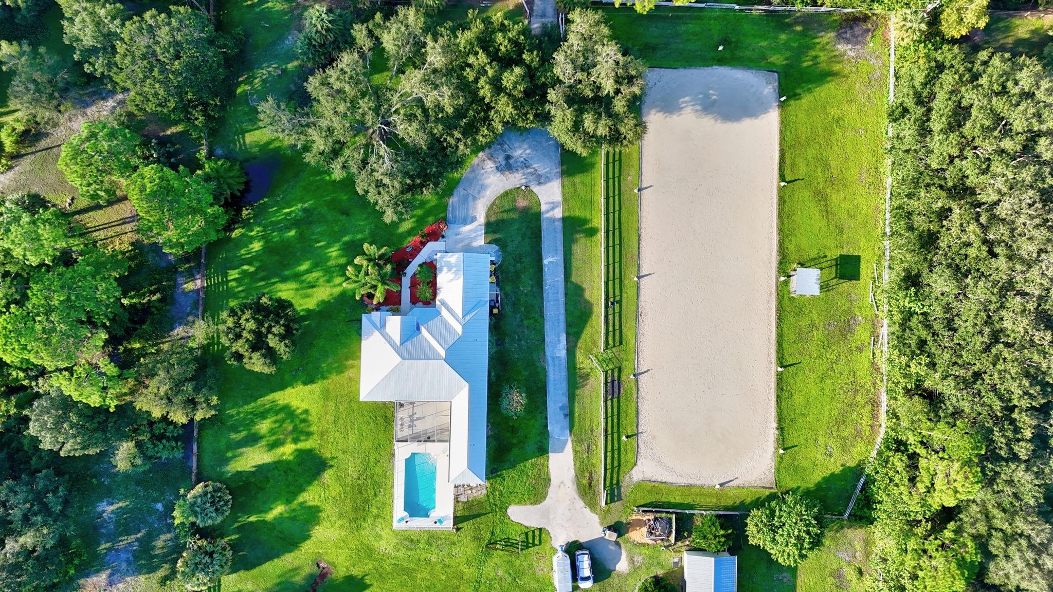A remarkable find. Bring your dogs, cats, farm animals and horses. Don't forget get your kids. Plenty of room inside and out with 4 bedrooms, 3 baths and an extra bonus room or office. Entertain in the formal living room with pocket sliders that open up to a screened porch and pool .Relax in the spacious family room. The primary suite has been remodeled and the master bath offers a relaxing feel. The home boosts vaulted ceilings and 8 ft doors. The 5 acre property has a small 5 stall barn with tack/feed room and a riding area that has the best footing in Palm city and is fully fenced. The ring was put in by IDA Development. Let your animals enjoy 3 large grass paddocks and 2 small ones. Home is located on a dead end. Close to everything. A country feel without being far from anything